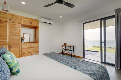 Each bedroom is spacious, with an ocean view, high ceilings, luxurious linens, air conditioning, a small personal safe for peace of mind, and en suite bathrooms! Natural light, thoughtful touches, and plenty of fresh air make it easy to exhale and just be. Whether you crave private serenity with your own dipping pool, sharing a room with a friend or partner, or want the most cost-effective option with other guests, we have accommodations to suit your needs.